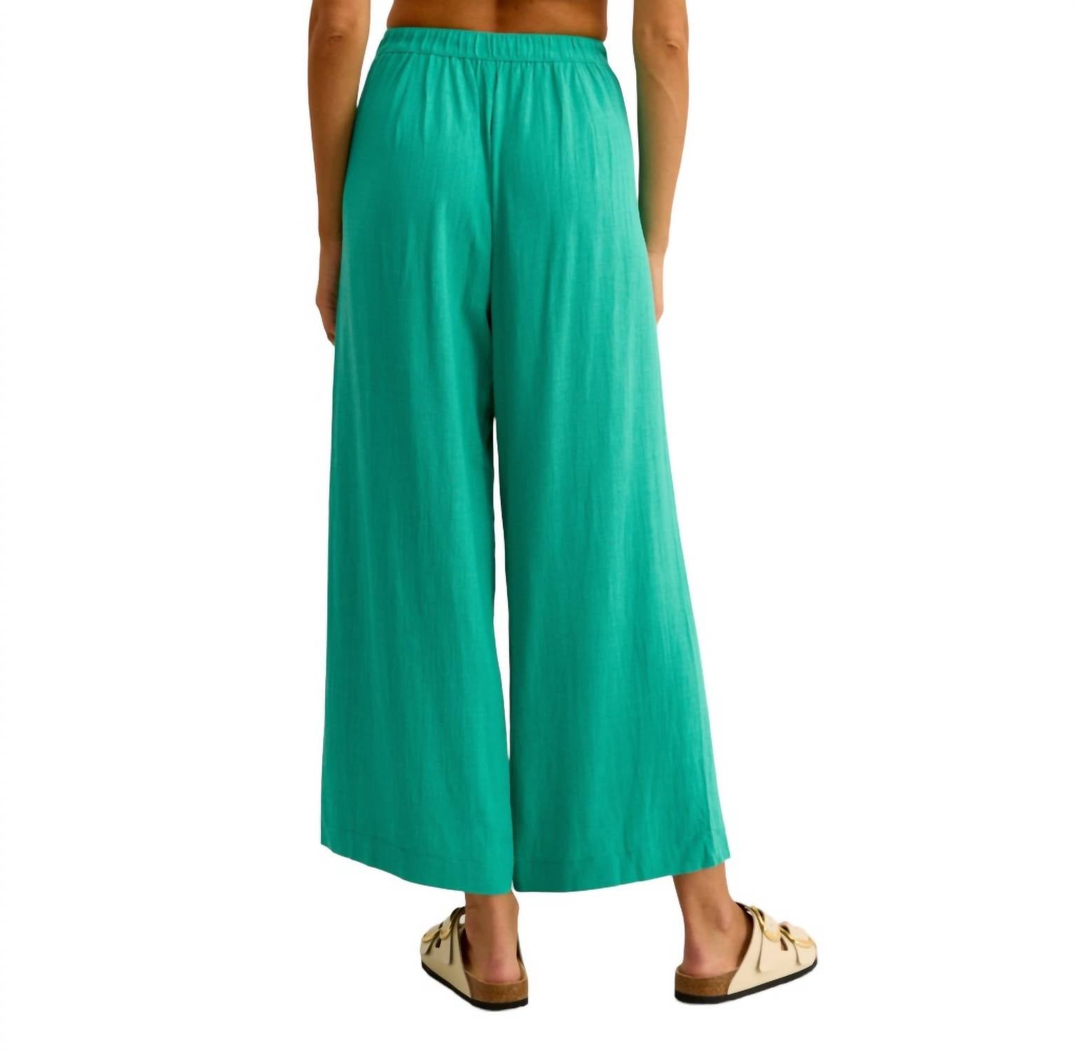 Esta Calça Cropped apresenta um corte relaxado com cintura alta e pernas largas, confeccionada em uma mistura de 86% rayon e 14% linho. Com fecho de botão, braguilha com zíper e bolsos práticos, é fácil de cuidar, podendo ser lavada na máquina e pendurada para secar.