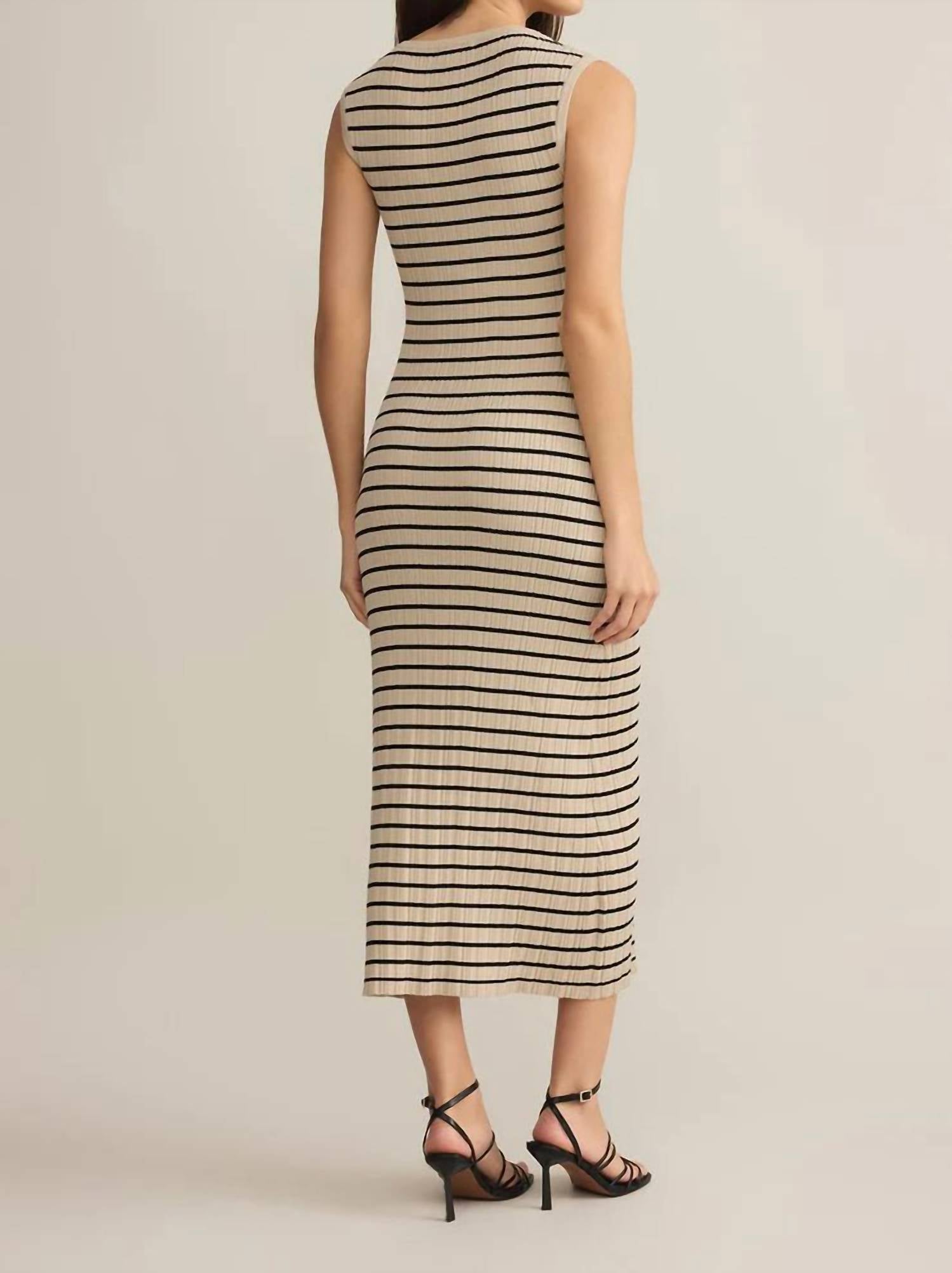 Um vestido midi tão versátil que suas opções de uso são infinitas. Descubra um estilo despojado, criado para uma silhueta elegante em tom Sandshell. Apresenta um design sem mangas e é confeccionado em tecido canelado listrado de alta resistência. Combina 70% rayon e 30% poliéster para o máximo conforto. Lave à mão separadamente, remodele e deixe secar na horizontal ou opte pela lavagem a seco.