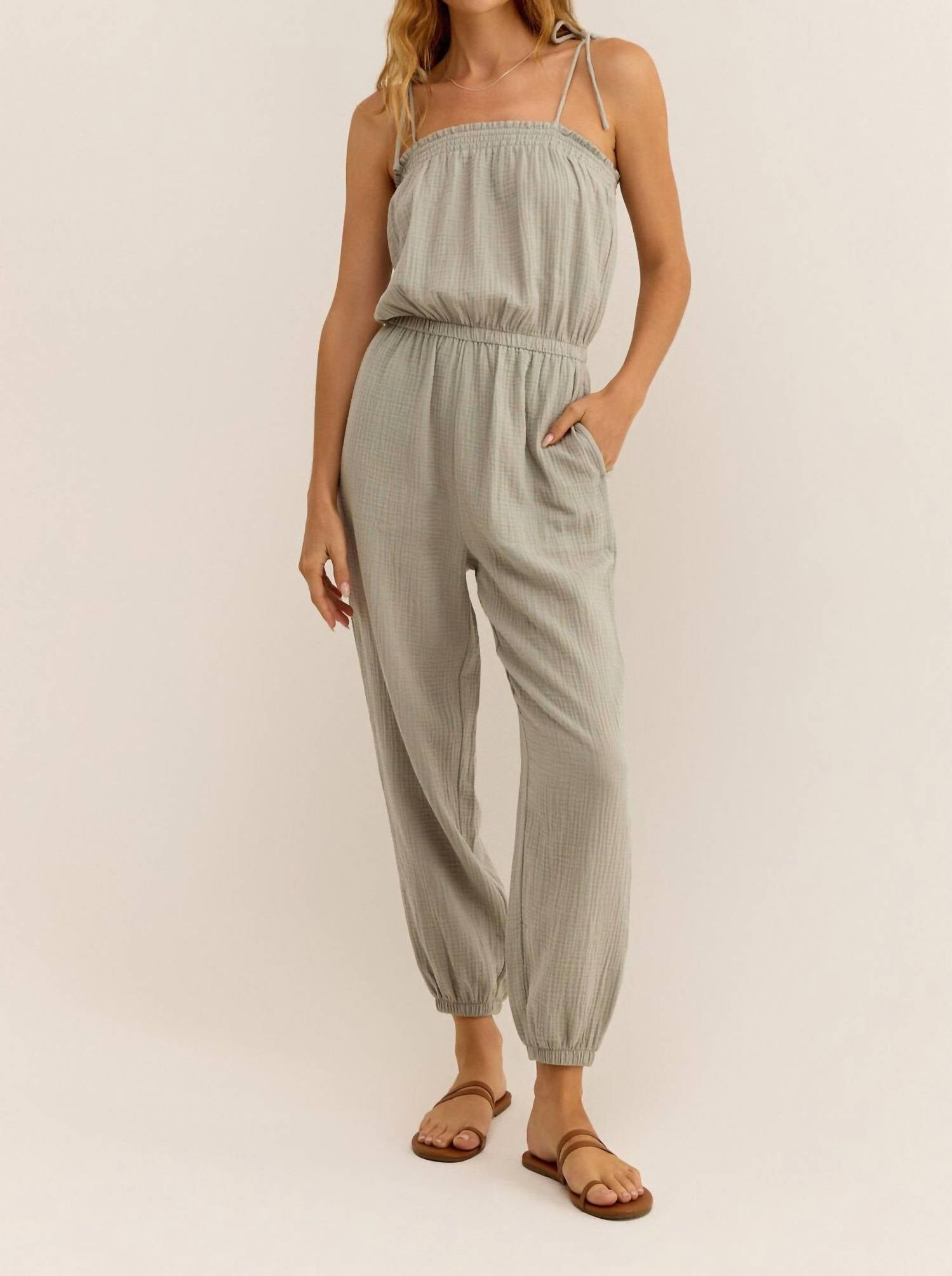 Vista e vá! Este MACACÃO KIARA GAUZE apresenta um elegante decote careca, alças finas delicadas e cós elástico, material de gaze dupla, 100% algodão, macio e leve. Com comprimento total de 127 cm, caimento regular.