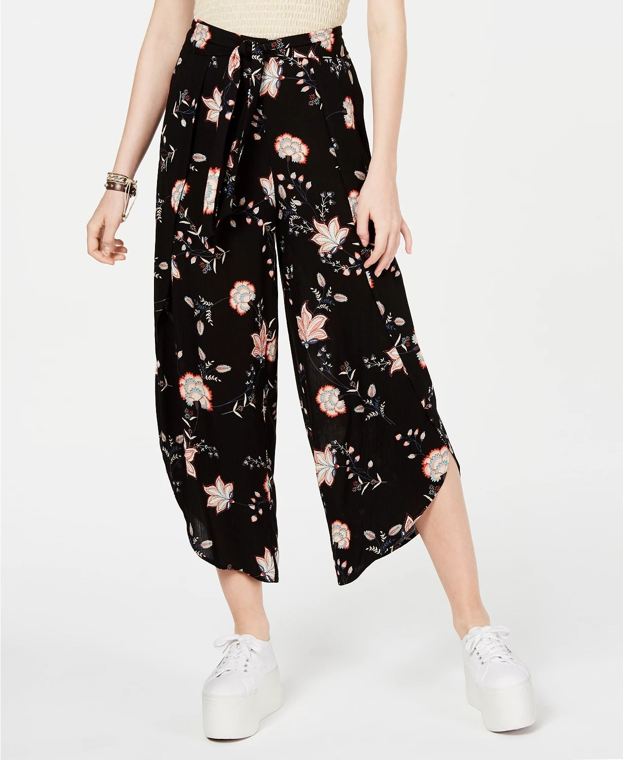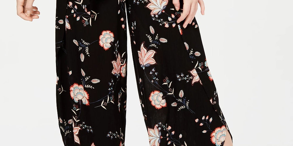 Costura interna aprox.: 27" | Altura frontal: aprox. 7"; chega ao tornozelo | Estilo pull-on; amarra na cintura | Fenda do tornozelo ao quadril; estampado por toda parte; fluido | Sem forro | Rayon