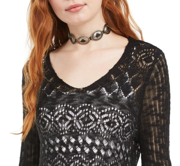 Suéter de manga larga Pointelle-Knit da American Rag Juniors, preto, tamanho médio