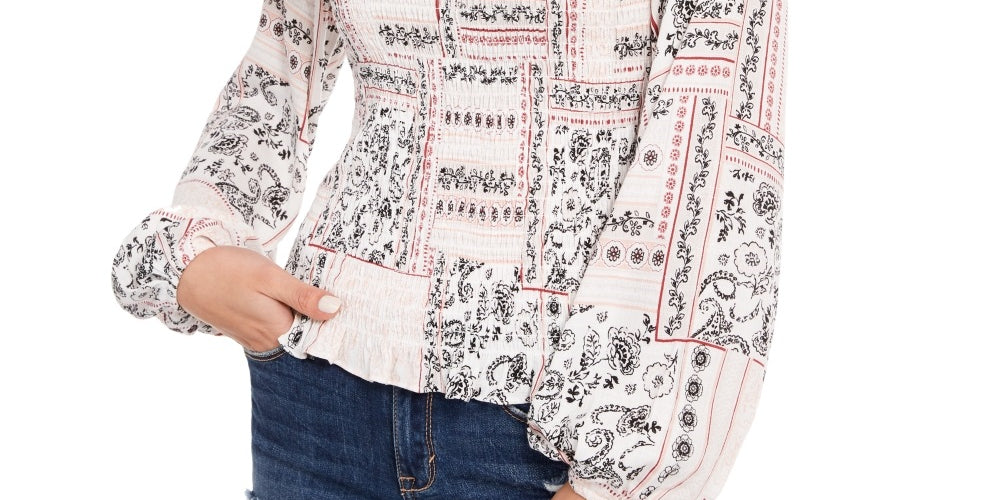 Silhueta ajustada; atinge a cintura | Decote redondo com acabamento em babados | Corpete franzido | Mangas longas e bufantes com punhos elásticos