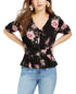Top peplum estampado com cintura franzida e babados da American Rag Juniors, preto, tamanho X-S