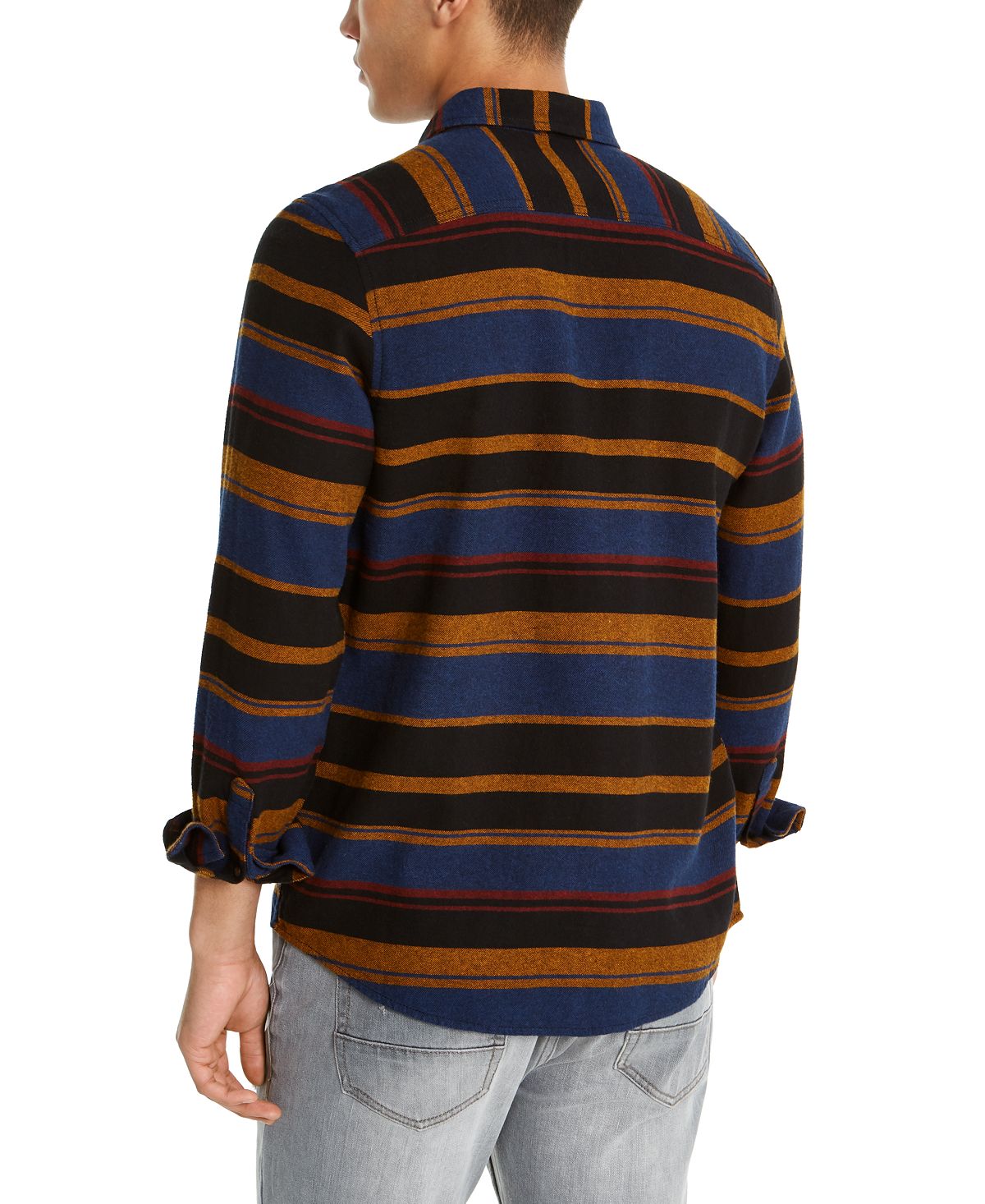 Uma mistura de tons vibrantes de azul, solar e neutro, ilumina as listras variadas desta camisa de flanela de algodão Fay de manga comprida com botões da American Rag, criando um visual rústico e moderno, com um toque macio. Caimento regular, gola pontuda, todo em algodão, lavável à máquina.
