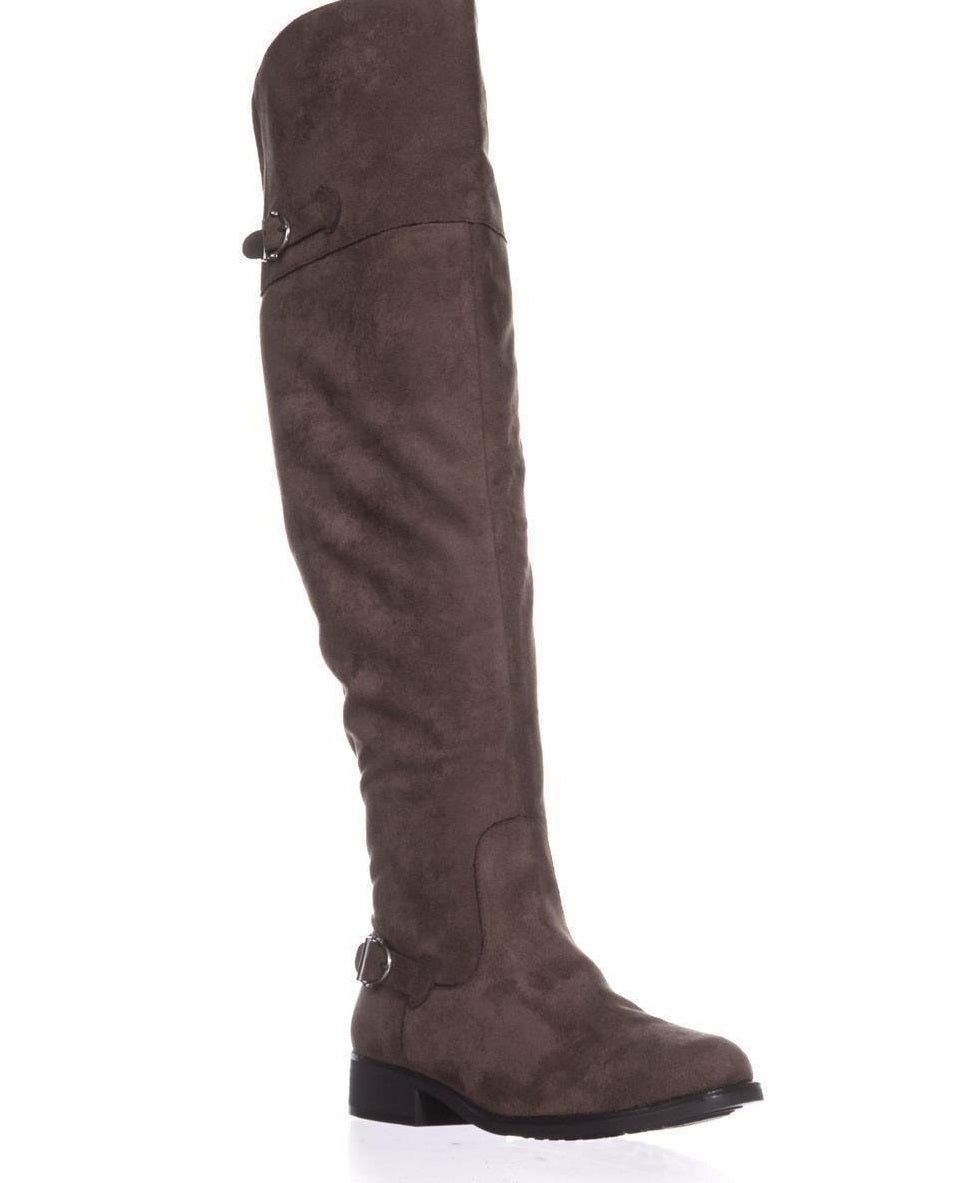 botas acima do joelho com bico redondo e zíper lateral | detalhe de tira e fivela no tornozelo e na parte superior do cano |