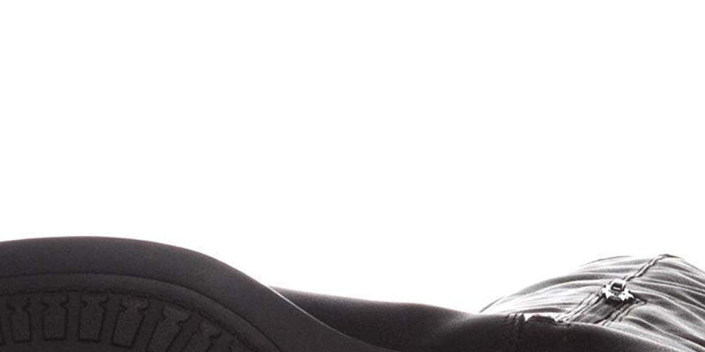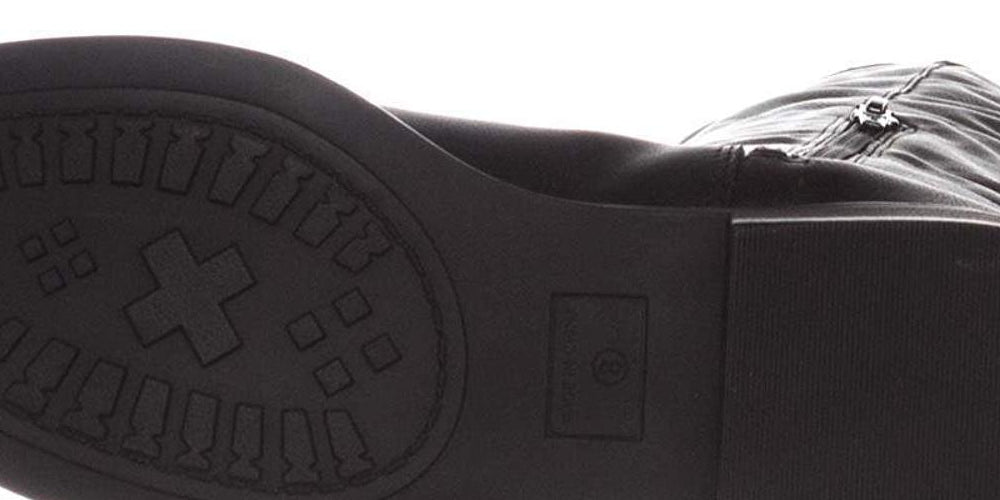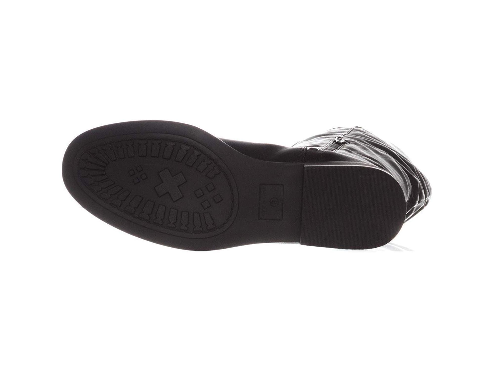 Botas femininas American Rag pretas com fivela e zíper, bico redondo, salto bloco, 6 m