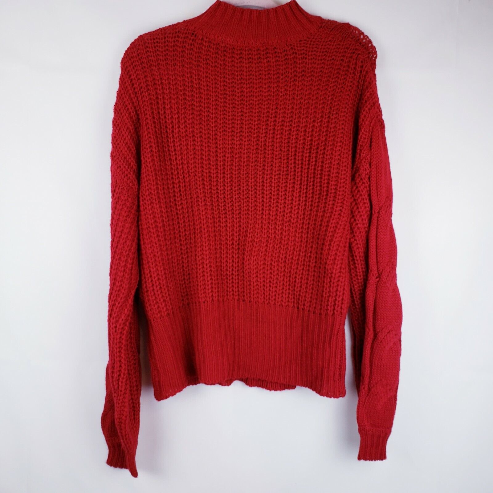 Suéter feminino American Rag de malha trançada com gola redonda, vermelho, tamanho GG