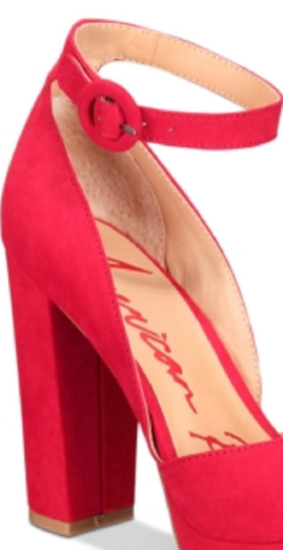 American Rag Feminino Reeta Tecido Peep Toe Tira No Tornozelo Bombas Dorsay Vermelho Tamanho 9,5M