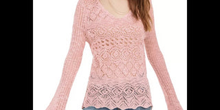 Suéter feminino American Rag Juniors Pointelle-Knit com mangas largas, rosa, tamanho médio