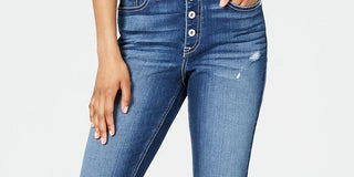 Calça jeans skinny rasgada com braguilha e botões American Rag Juniors, tamanho 9, azul