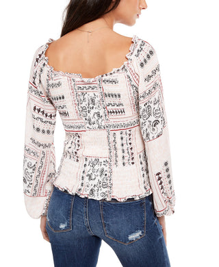 Blusa estampada American Rag Junior com mangas curtas e babados, tamanho X-S