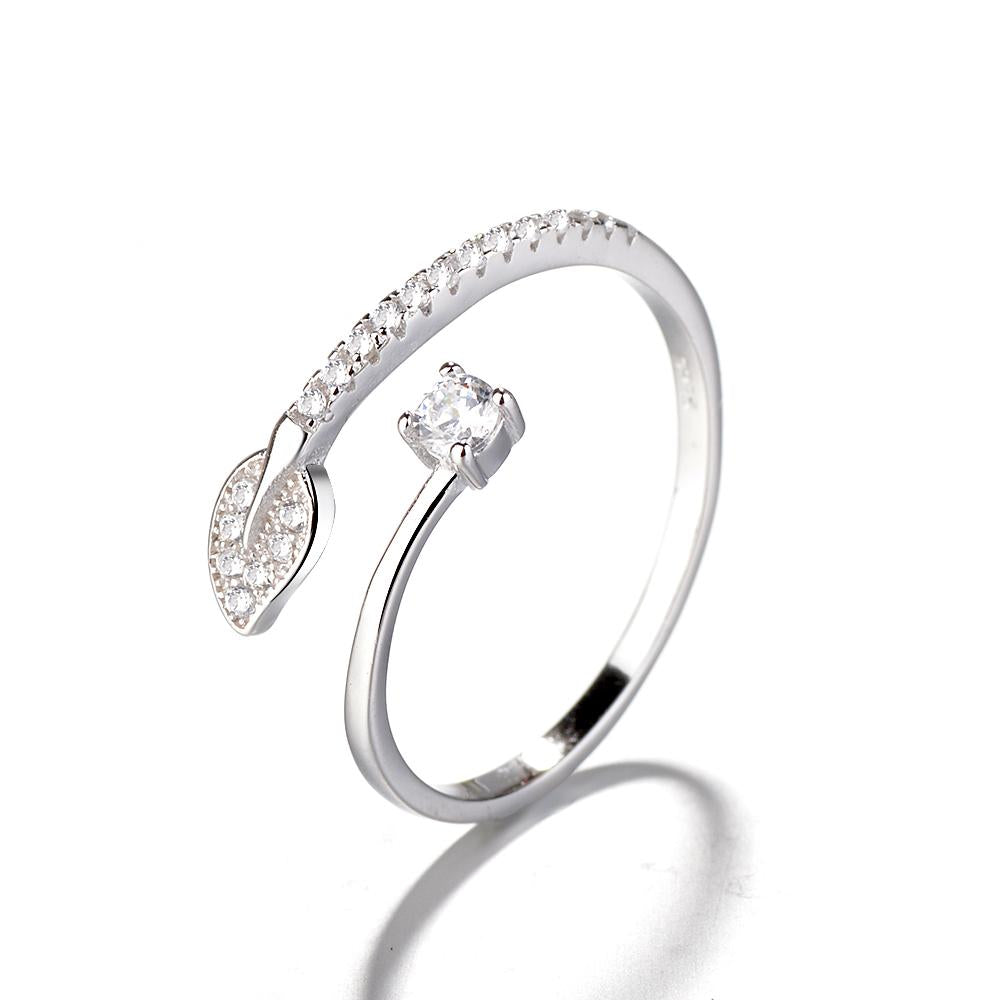 Anel de prata esterlina de alta qualidade com folha de prata esterlina, feito de liga de alta qualidade. Use este anel de prata esterlina para saborear o sabor do amor. Ajustável, sem chumbo e níquel, este é um anel de compromisso que você não vai querer tirar. A faixa de prata com um delicado design de folha de prata se ajusta confortavelmente ao seu dedo e foi remodelada para ser suave para peles sensíveis. A cor prateada clássica é linda e luxuosa, mas também fica ótima em fotos. Este anel é perfeito para qualquer ocasião.