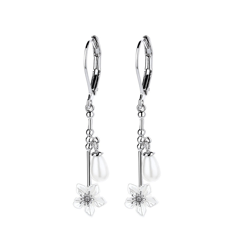 Brincos pendentes florais de pérola cultivada e prata esterlina com alavanca