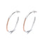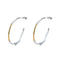 O design apresenta um formato clássico de argola com um toque especial: a argola é bicolor, com uma camada externa prateada e uma interna dourada. Isso cria um contraste marcante entre os dois metais, moderno e atemporal. Os brincos são leves e confortáveis de usar, tornando-os adequados para o dia a dia ou ocasiões especiais.