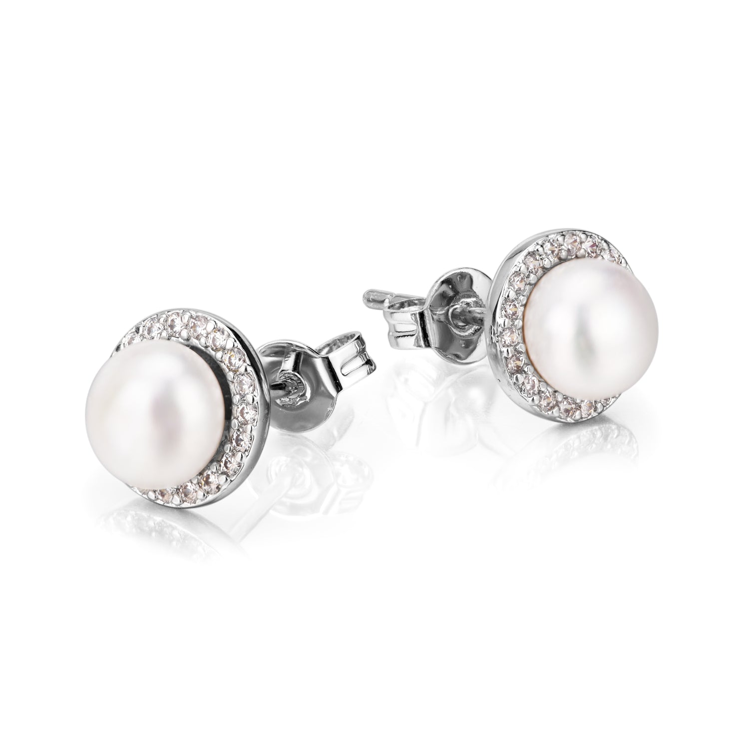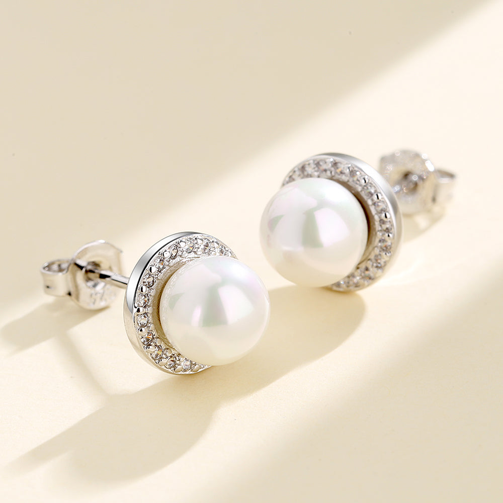 Os brincos apresentam uma pérola cultivada em água doce no centro, cercada por um halo de pedras preciosas de topázio branco. A combinação da pérola e do topázio cria um visual deslumbrante e sofisticado, com o topázio adicionando um toque de brilho à elegante pérola.