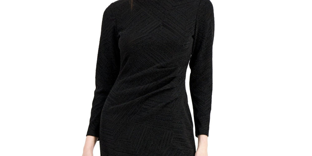 Detalhes metálicos brilhantes em todo este vestido Anne Klein destacam o comprimento midi justo ao corpo. | Comprimento aproximado de 45 cm, do centro do pescoço até a barra. O comprimento é baseado no tamanho 8 e varia 1/4 entre os tamanhos. | Ajustado no peito, cintura e quadris. | Decote redondo; Corte justo. | Estilo pulôver.
