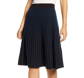 Anne Klein Saia plissada listrada abaixo do joelho feminina, preta, tamanho grande