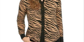 Camisa feminina Anne Klein com botões e estampa de zebra, marrom, tamanho 10