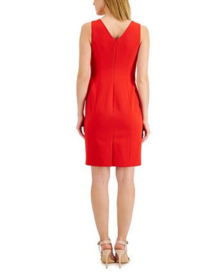 Vestido feminino Anne Klein Contour Stretch com decote em V, vermelho, tamanho 0