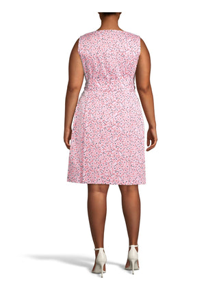 Vestido feminino Anne Klein com zíper e amarração floral, sem mangas, gola canoa, acima do joelho, ajuste flare, rosa, tamanho 18W