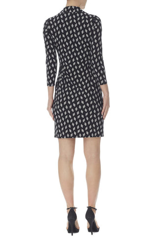 Vestido feminino Anne Klein com estampa geométrica e gola envolvente frontal, preto, tamanho grande