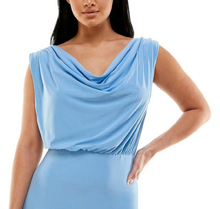 Vestido feminino de cetim B Darlin, azul, tamanho 16W