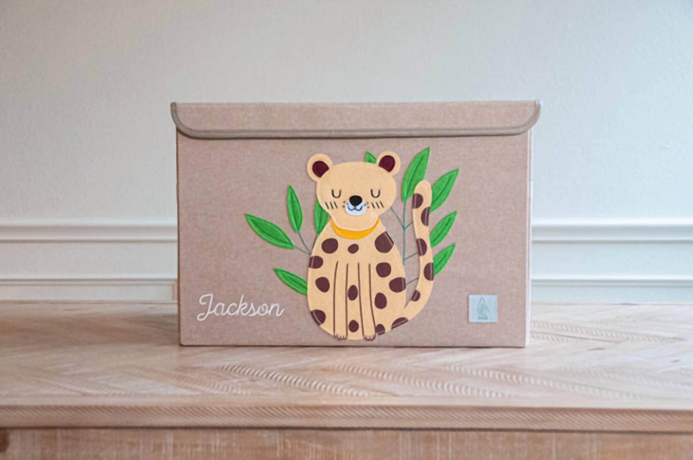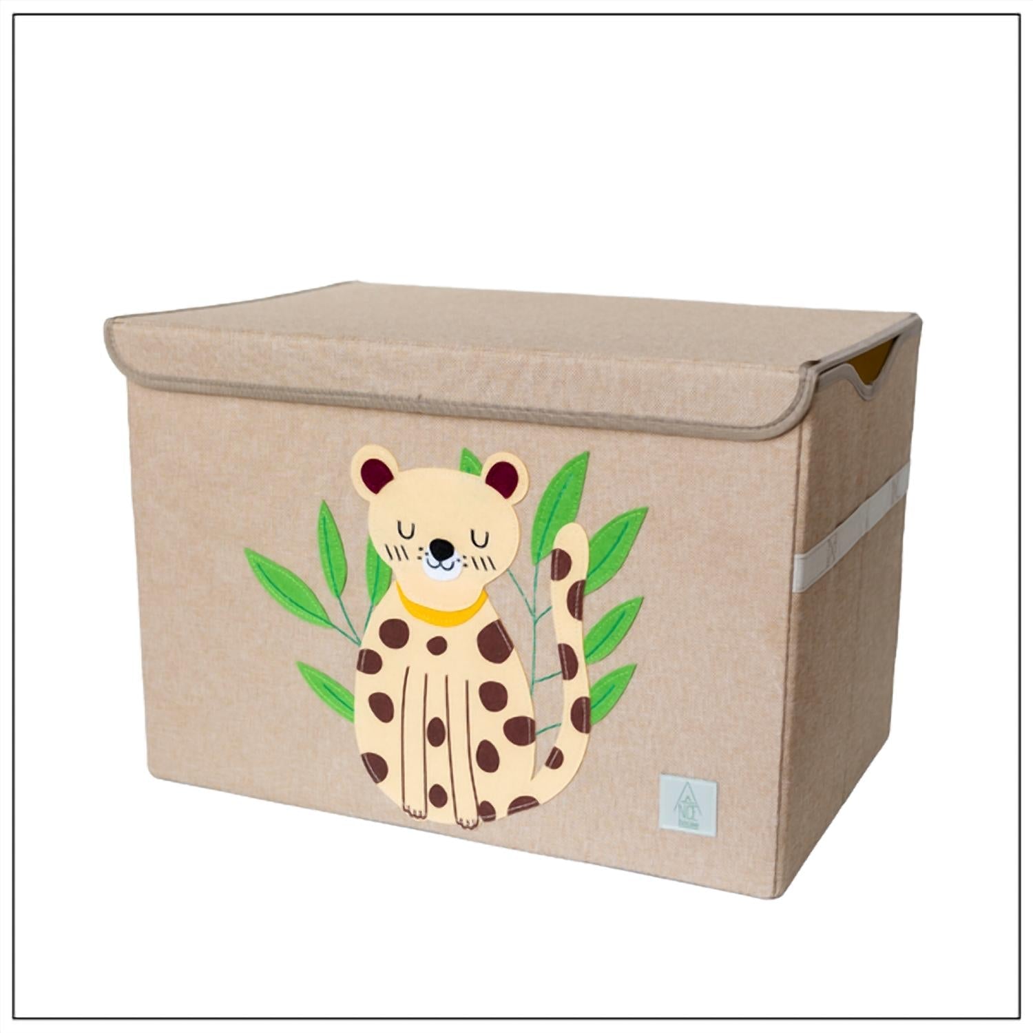 Conheça a Caixa de Brinquedos e Armazenamento Dobrável Peaceful Cheetah Appliquéd da A Nice House, projetada em um versátil tom bege para uma organização elegante. Com alças reforçadas em ambos os lados, é fácil mover e levantar esta caixa para qualquer necessidade. Uma tampa acoplada com fecho de velcro garante segurança, enquanto uma placa de inserção garante integridade estrutural. Ideal para guardar brinquedos, roupas, decorações e muito mais, esta caixa combina perfeitamente funcionalidade com um design lúdico.