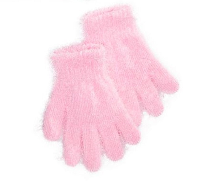 Conjunto de 2 peças de chapéu e luvas com pompons de pele sintética ABG Big Girl's, rosa, tamanho 7-14