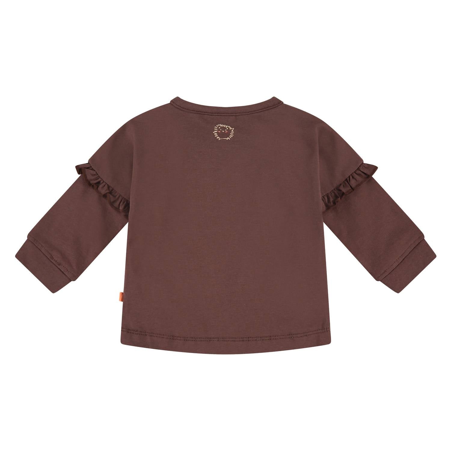 Introducing the Kid's Floral & Terry 2pc Set by Babyface, a charming ensemble in rich brown and eggshell hues. The long sleeve tee showcases dainty floral graphic details with embroidery accents, featuring a rounded neckline and ruffle trim, complemented by a double button closure on the right shoulder. It pairs perfectly with cozy terrycloth joggers that include an elastic pull-on waistband, drawstring accent, and rolled bottom hem. Top Composition: 95% BCI Cotton, 5% Elastane; Bottom Composition: 82% Polyester, 18% BCI Cotton. Care: Machine wash cold separately inside out, do not bleach, lay flat to dry, cool iron inside out, or dry clean.