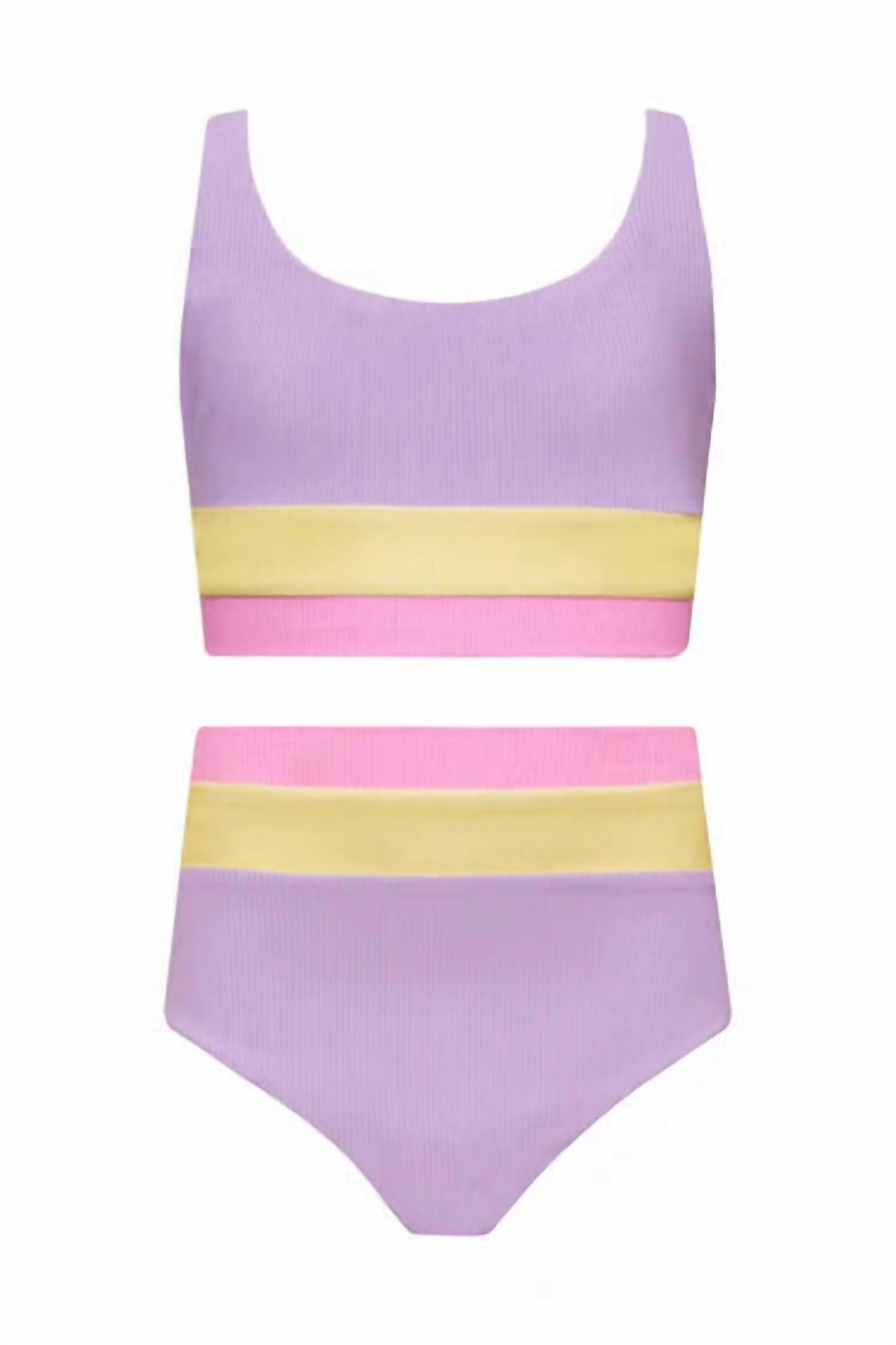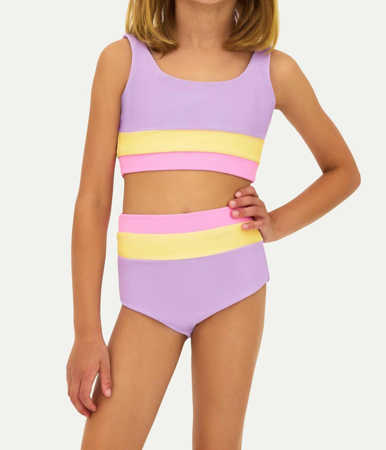 Mergulhe no estilo com o conjunto de biquíni Little Mackenzie & Heidi da Beach Riot, criado para elevar o seu dia na praia com seu sublime colorblock primaveril e estampa listrada da moda. Este item essencial para o verão é confeccionado em tecido canelado, composto por 82% poliéster e 18% elastano, oferecendo a combinação perfeita de conforto e estilo. O design de cintura alta adiciona um toque de elegância e garante um ajuste seguro enquanto você aproveita o sol. Ideal para jovens fashionistas prontas para abraçar a vibe athleisure na praia.