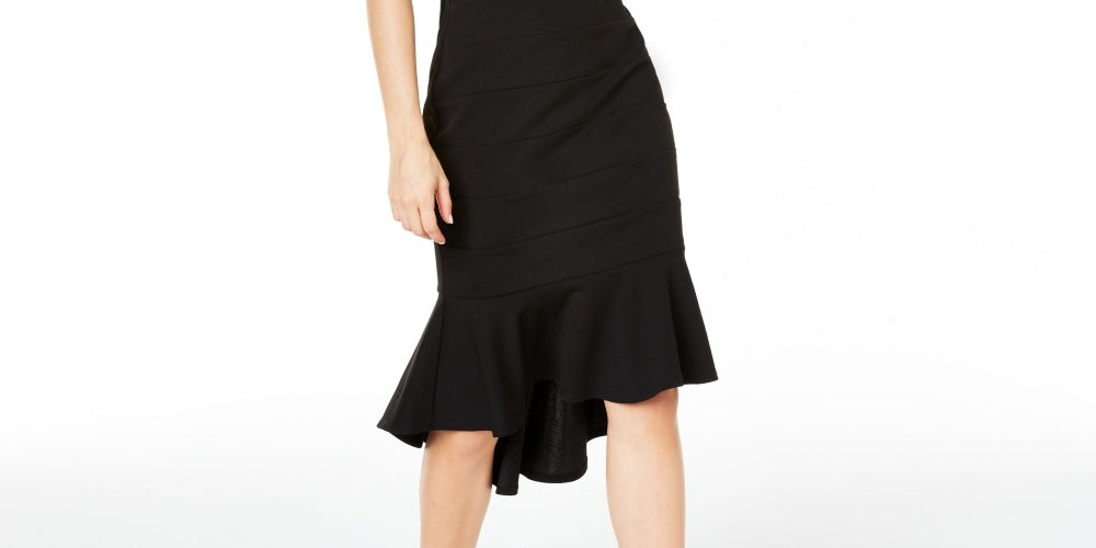 Aproximadamente 91 cm de comprimento, do centro do pescoço até a bainha. O comprimento é baseado no tamanho 7 e varia 1,2 cm entre os tamanhos. | Decote em V; corte justo | Zíper central nas costas | Alças finas ajustáveis | Saia sereia com faixas; costas em tela ilusão com franzido.