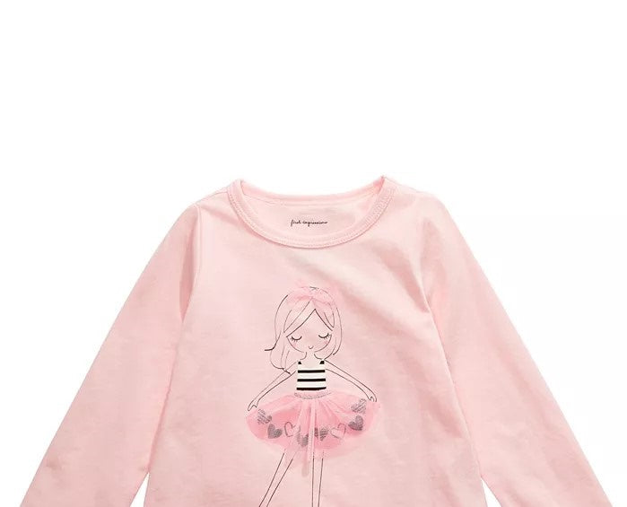 Decote redondo | Bailarina com tutu na frente | Todo em algodão | Lavável à máquina | Importado