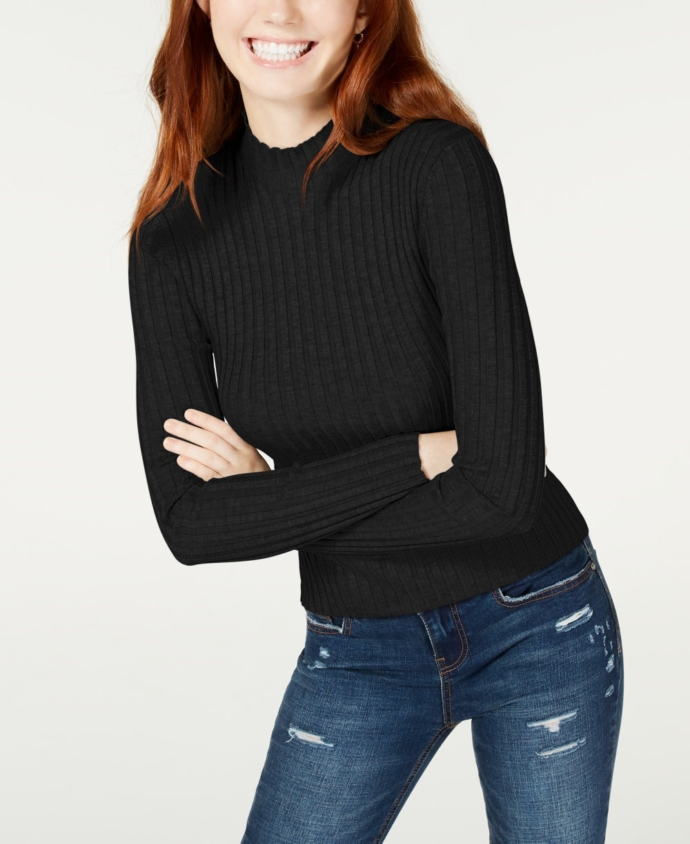 Suéter de gola alta simulada em malha canelada para juniores da Hooked Up by IOT, preto, tamanho X-S