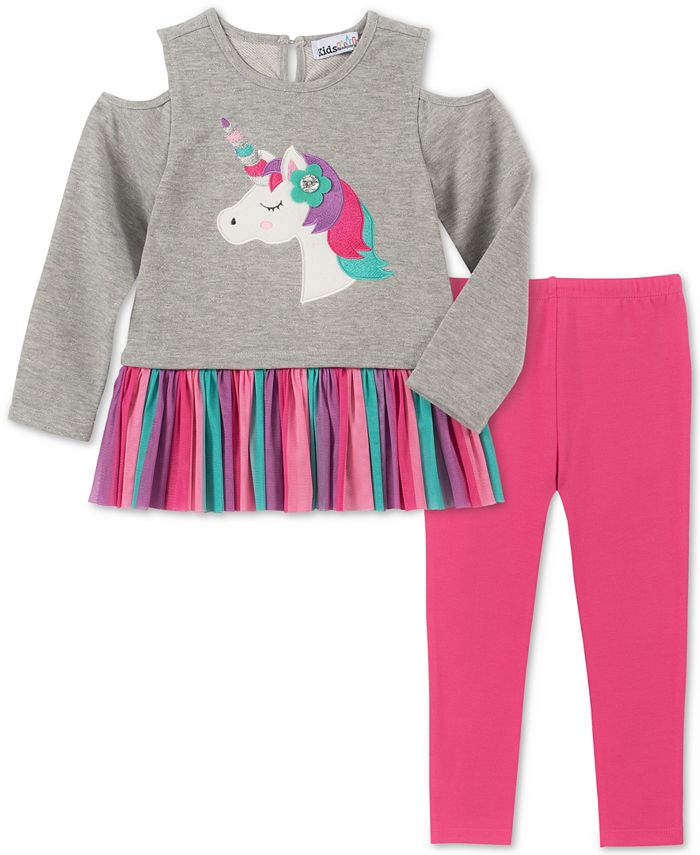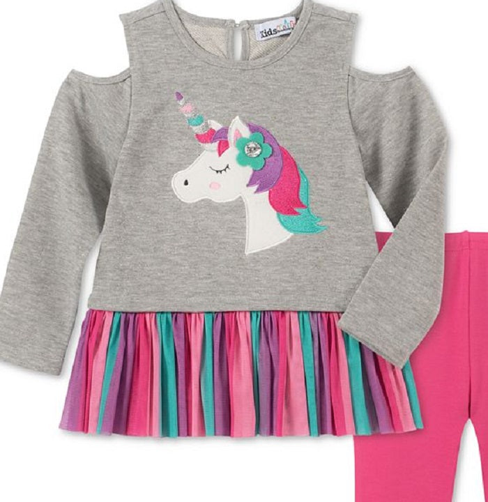 Conjunto de túnica e leggings de unicórnio de manga comprida para meninas da Kids Headquarters, cinza, tamanho 6 a 9 meses