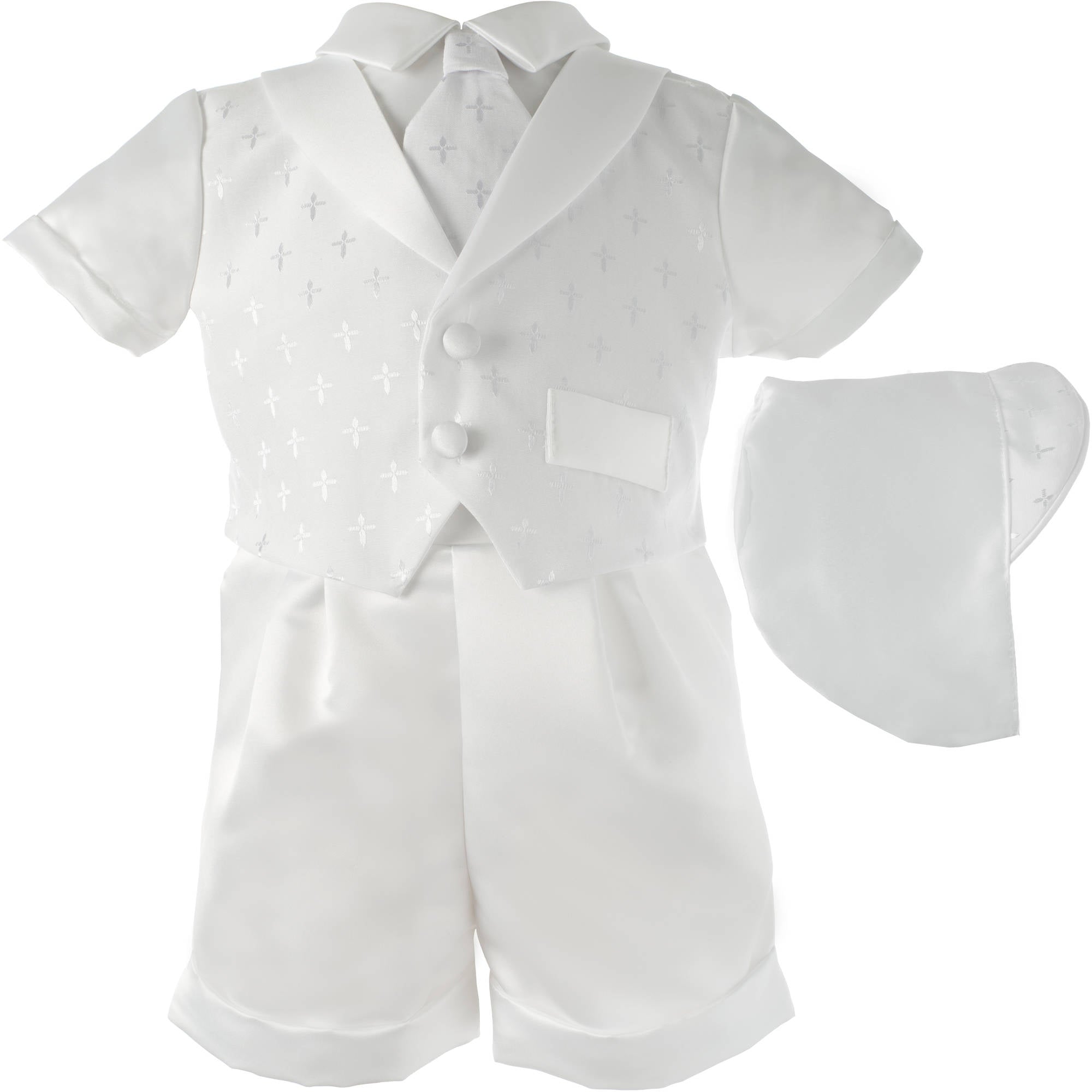 Lauren Madison Baby Boy's Cross Dobby Batizado Terno Branco Tamanho 0-3 M