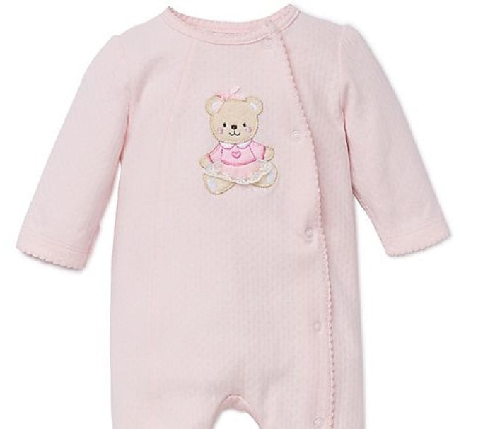 Macacão com pés de urso Little Me Baby Girl's Sweet Bear Footsuit Rosa Tamanho 9 M