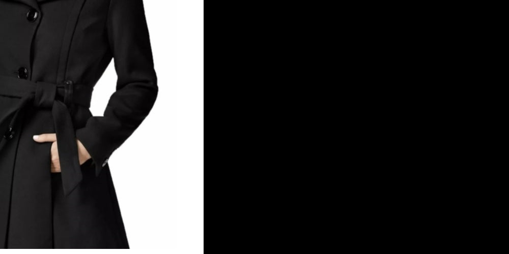 A modelo veste tamanho pequeno | Comprimento aproximado: 91 cm do centro das costas até a bainha | Gola alta; fechos de botão assimétricos na frente | Cinto removível | Bolsos internos | Forrado | Exterior: poliéster/rayon/elastano; forro: poliéster