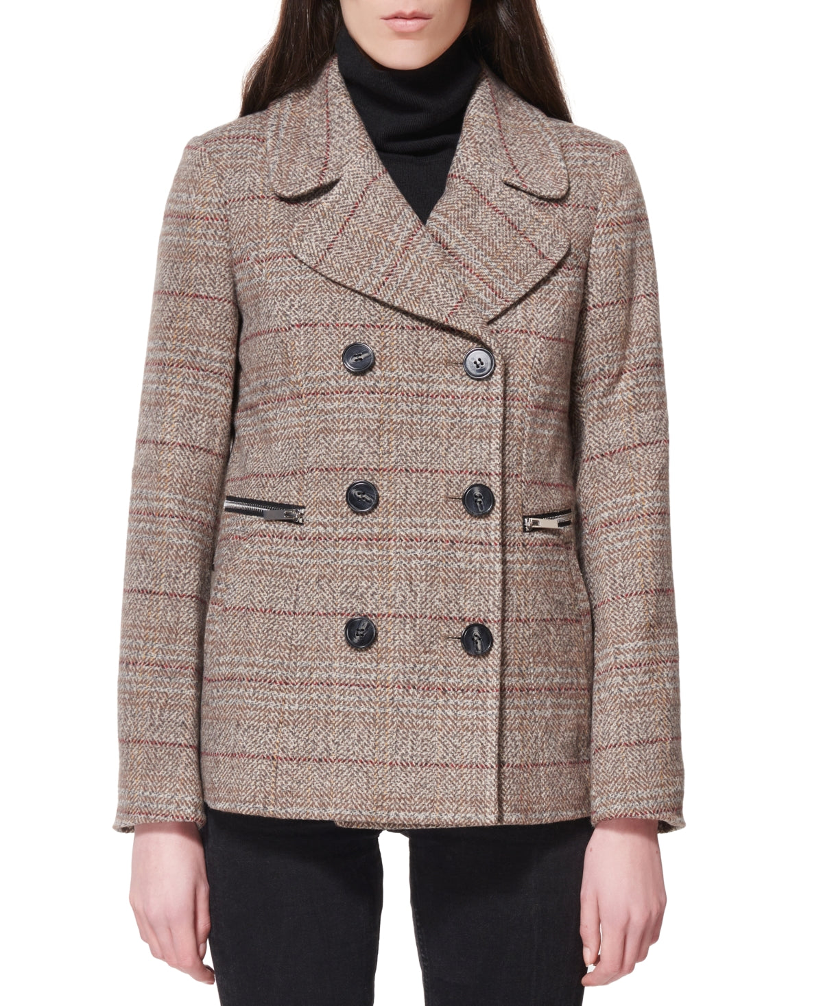 Bolsos horizontais com zíper dão um toque especial à parte frontal deste sobretudo trespassado da Maralyn & Me |