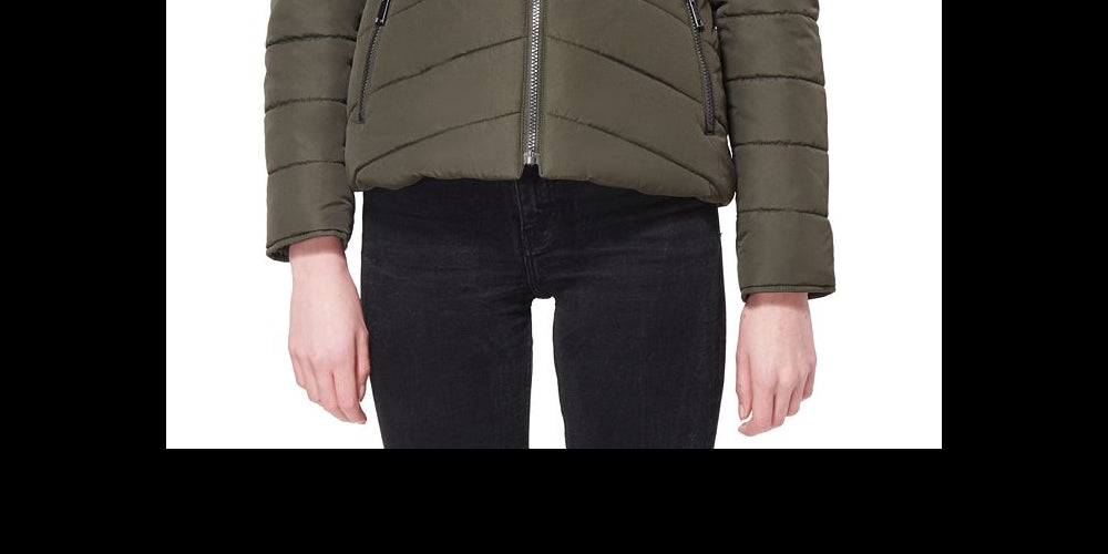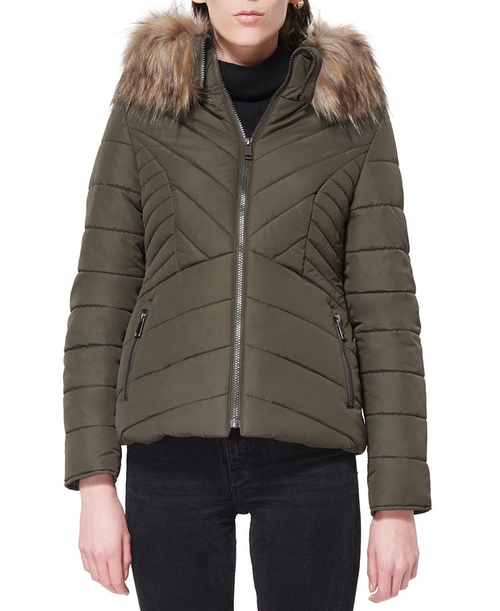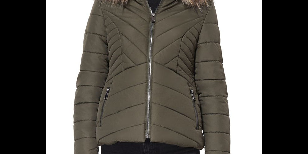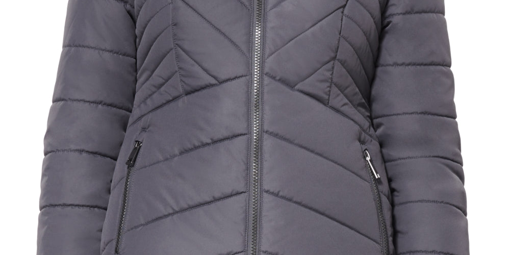 Uma linda gola xale em pele sintética luxuosa completa este aconchegante casaco acolchoado com capuz da Maralyn & Me. | Aproximadamente 24 de comprimento do centro das costas até a bainha | Gola xale e capuz em pele sintética; fecho de zíper frontal | Dois bolsos laterais | Resistente à água | Forrado | Exterior