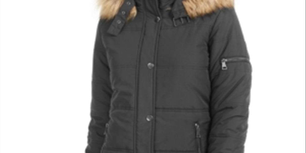 Maralyn & Me acerta em cheio no estilo com este casaco puffer superconfortável | projetado com acabamento divertido em pele sintética e punhos de malha para maior proteção. | Aproximadamente 34 de comprimento do centro das costas até a bainha | Capuz removível com acabamento em pele sintética e gola alta; fecho de zíper frontal com sobreposição de botão de pressão | Resistente à água | Três bolsos na frente