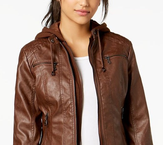 Jaqueta de couro sintético com capuz Maralyn & Me Junior, marrom, tamanho X-S