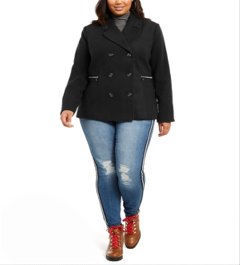 A Maralyn & Me ajuda a manter seu estilo impecável mesmo quando está frio com este sobretudo plus size com botões trespassados na frente. | Aproximadamente 71 cm de comprimento do centro das costas até a bainha | Gola estilo asa; fechos de botões trespassados na frente | Dois bolsos na frente | Forrado | Exterior; poliéster/viscose/elastano; forro; poliéster
