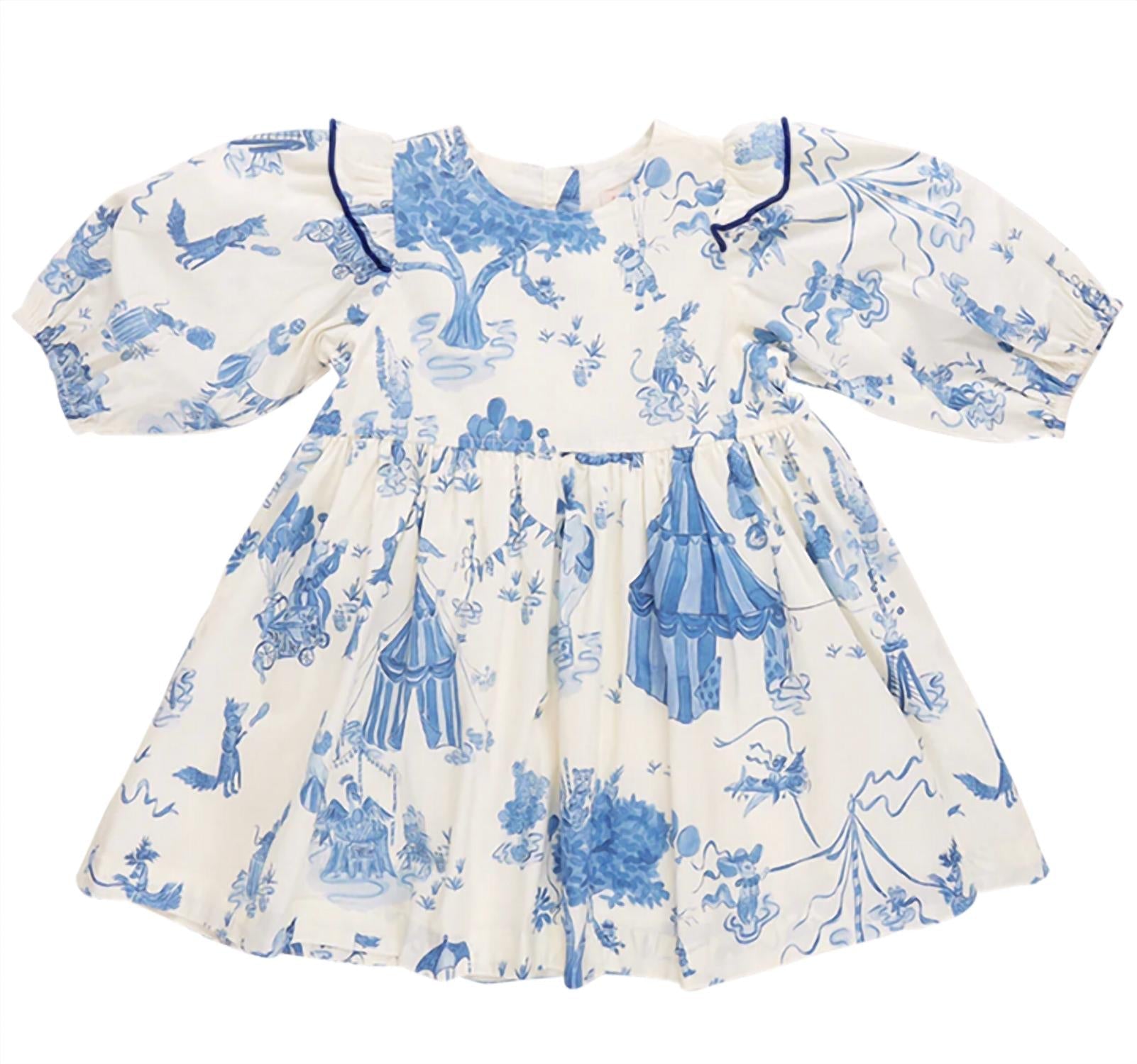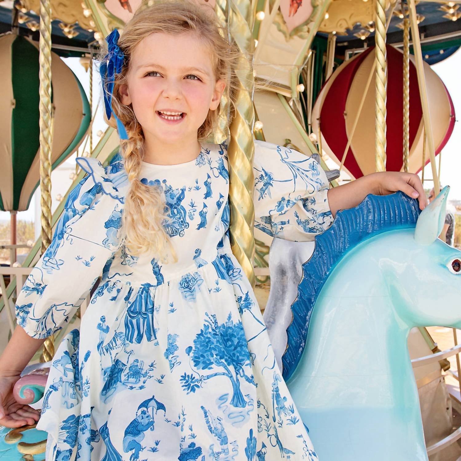 Uma estampa caprichosa dá vida a este vestido de manga longa, com cenas encantadoras inspiradas no circo, repletas de personagens lúdicos e detalhes encantadores. Cuidadosamente projetado com decote arredondado, detalhes nas mangas com babados e uma saia rodada e cheia, esta peça captura imaginação e elegância. Botões de glitter nas costas adicionam um toque sutil de brilho. Cada vestido é único, com a colocação da estampa variando ligeiramente. Perfeito para criar um momento mágico entre irmãos quando combinado com a versão para bebês.