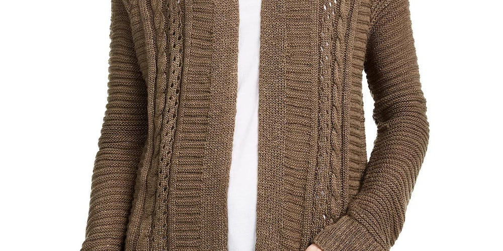 Caimento relaxado | Frente aberta sem fecho | Malhas mistas com detalhe de ilhós; dois bolsos aplicados | Forma pequena, sugerimos um tamanho maior para um ajuste perfeito | Acrílico/algodão | Lavar à mão com água fria
