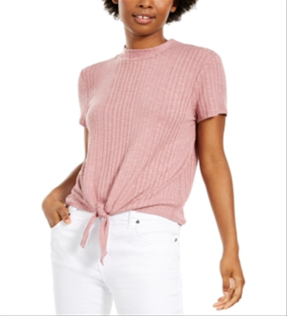 Com nervuras em várias larguras | O top de gola falsa da Pink Rose tem um elegante laço na cintura. | Ajuste relaxado | Gola falsa | Amarração com nó na cintura frontal | Modelagem pequena