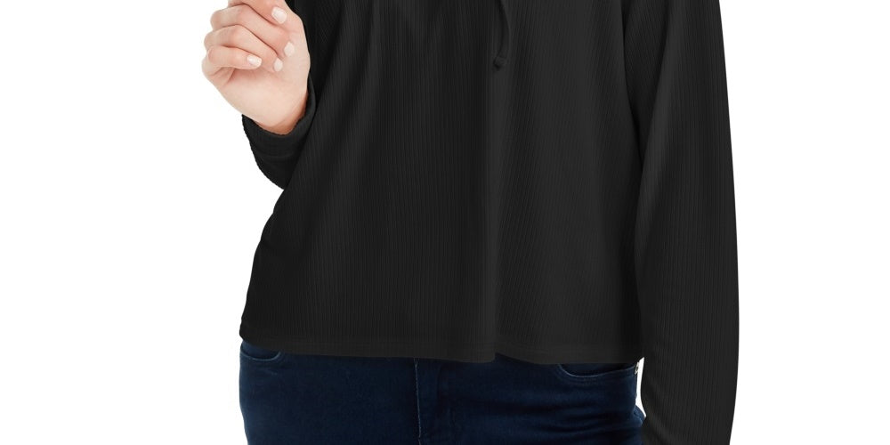 Moletom com capuz e malha canelada Pink Rose Juniors, tamanho grande, preto