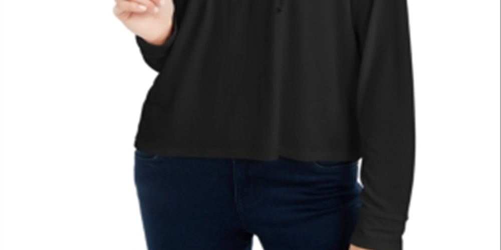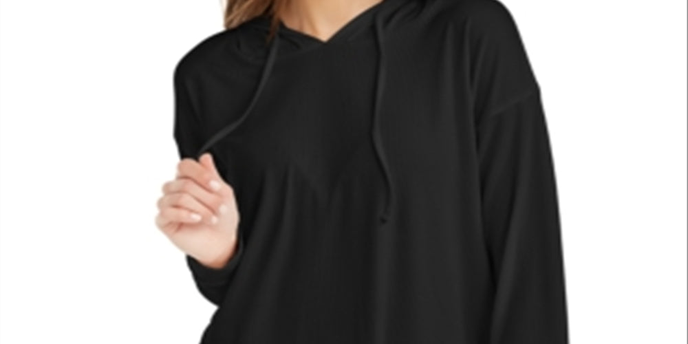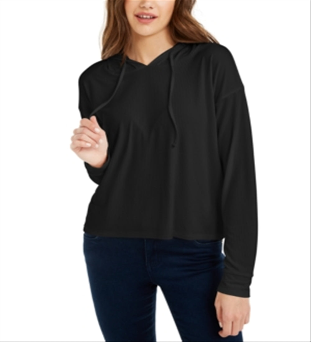 Pulôver com capuz e malha canelada Pink Rose Junior, preto, tamanho médio