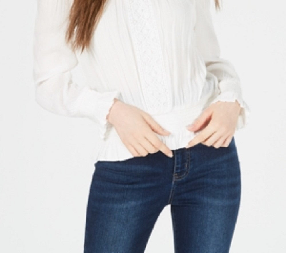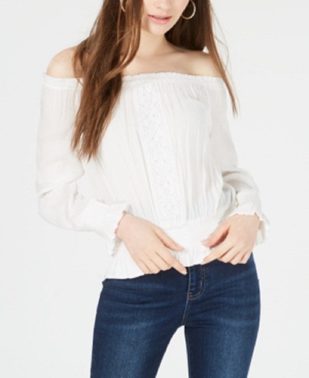 Detalhes franzidos e acabamento em crochê adicionam um toque de estilo boho ao top ombro a ombro com mangas compridas da Planet Heart
