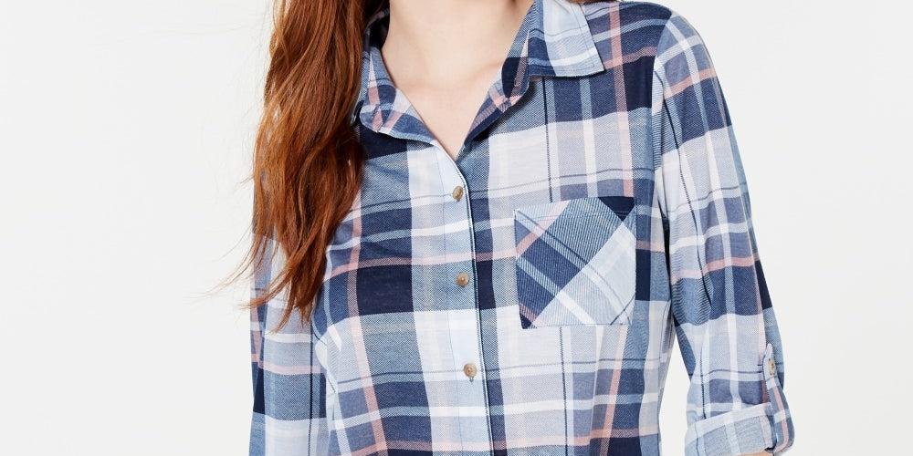 Gola pontuda; fecho frontal com botões | Bolso aplicado no peito; bainha da camisa | Mangas compridas com abas dobradas | Ajuste fácil; ajusta-se ao quadril | Forma pequena, sugerimos um tamanho maior para um ajuste perfeito | Poliéster
