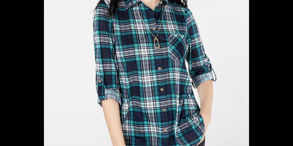 Camisa xadrez com aba dobrada Polly & Esther Junior, verde/preta, tamanho extragrande